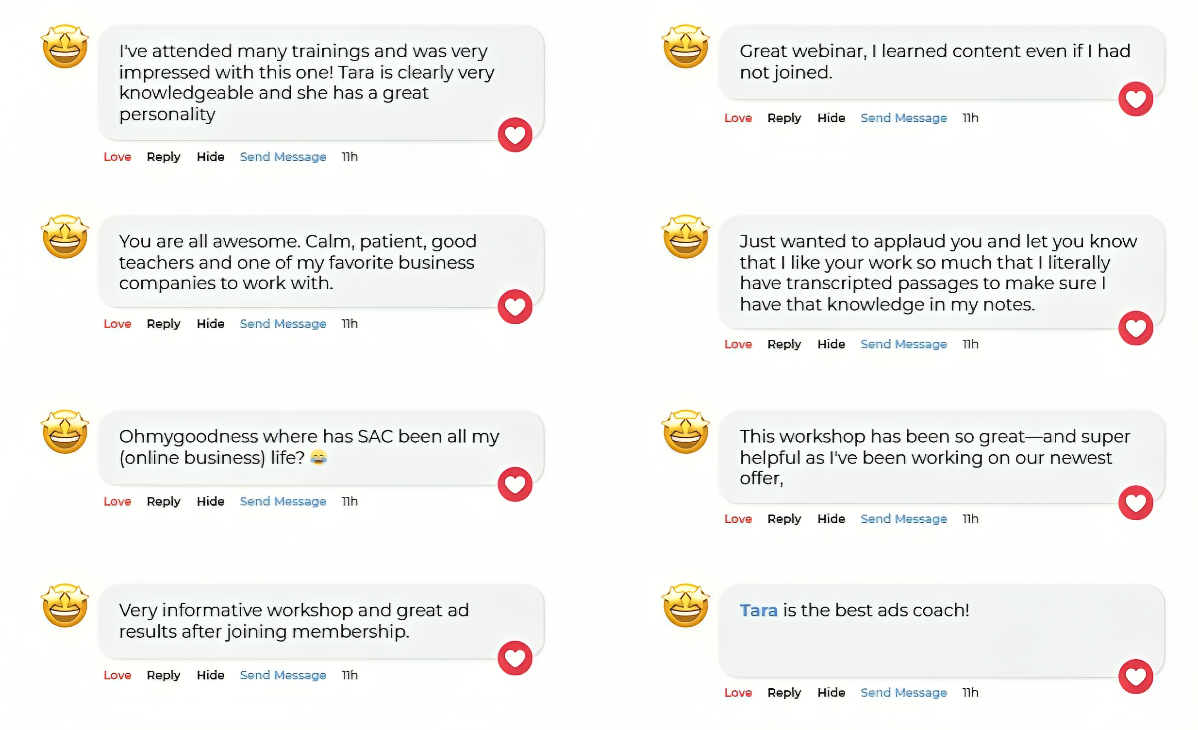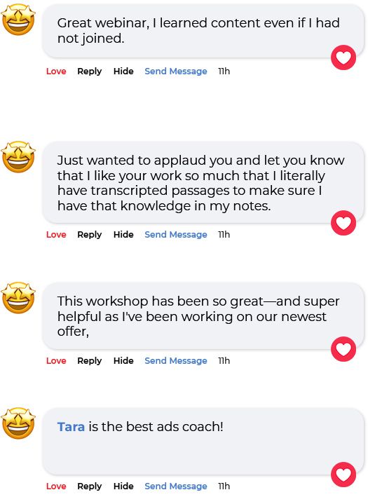 "I'm VERY impressed with how strategic and clear Tara was in the training. I'm excited to dive in and get good results"